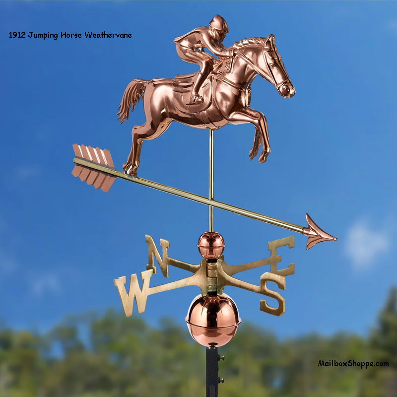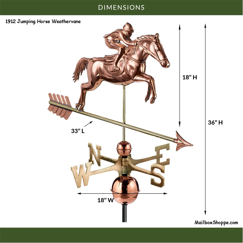 Show jumping is an equestrian tradition beloved the world over. Featured as an Olympic event for a century, the horse and rider have a pedigree that simply can’t be denied. Now you can capture the majesty of this inseparable pair as they gallantly leap to adorn the rooftop of your home, garage, cupola, barn or gazebo. Our pure copper weathervanes have been unsurpassed in style, quality, and durability – perfect for the house-proud homeowner. Bring The Joy of Outdoor Living to your home with this heirloom-quality piece.