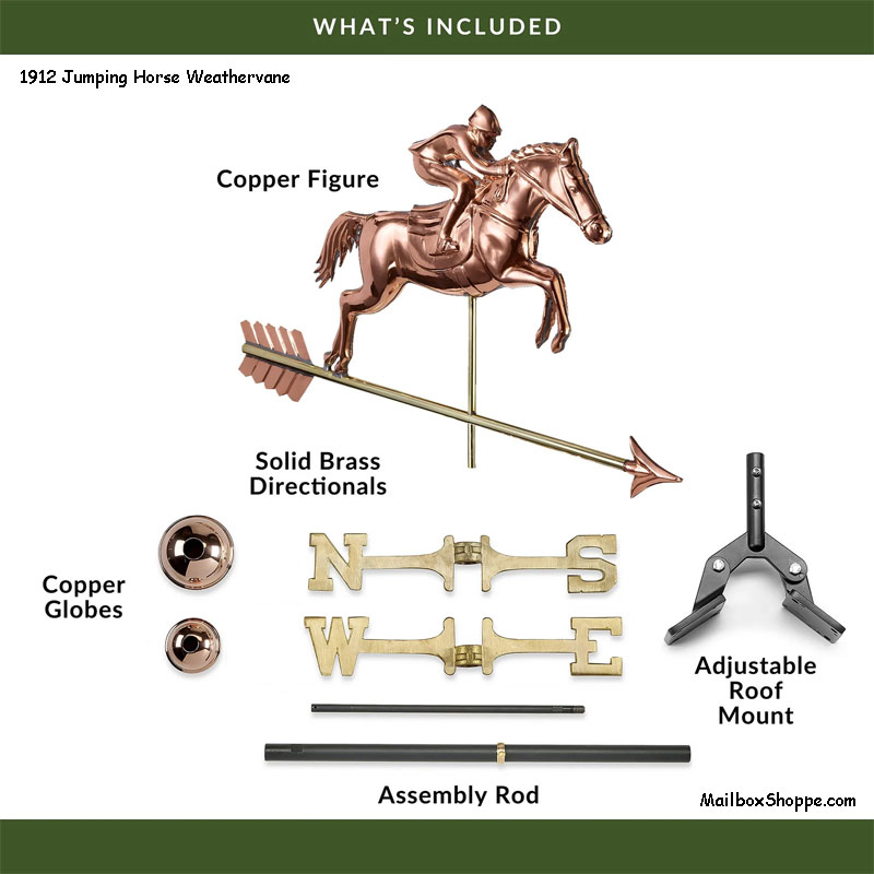 Show jumping is an equestrian tradition beloved the world over. Featured as an Olympic event for a century, the horse and rider have a pedigree that simply can’t be denied. Now you can capture the majesty of this inseparable pair as they gallantly leap to adorn the rooftop of your home, garage, cupola, barn or gazebo.