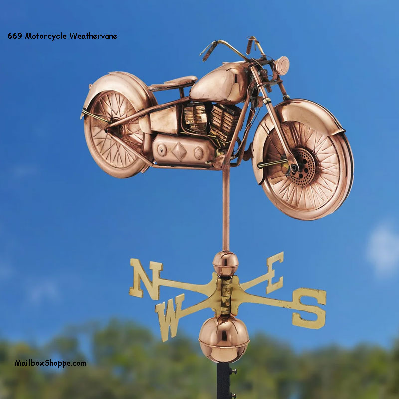 The perfect combination of technology, craftsmanship, and American heritage, this vintage motorcycle is ready to adorn the rooftop of your home, garage, cupola, barn or gazebo. Our pure copper weathervanes have been unsurpassed in style, quality, and durability – perfect for the house-proud homeowner.