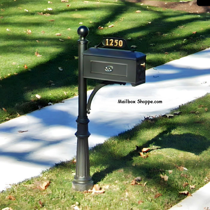 The 821KC Traditional Mailbox package is cast aluminum mailbox with an aluminum post and decorative cast brace. It uses a cast aluminum “C” brace under the mailbox.
