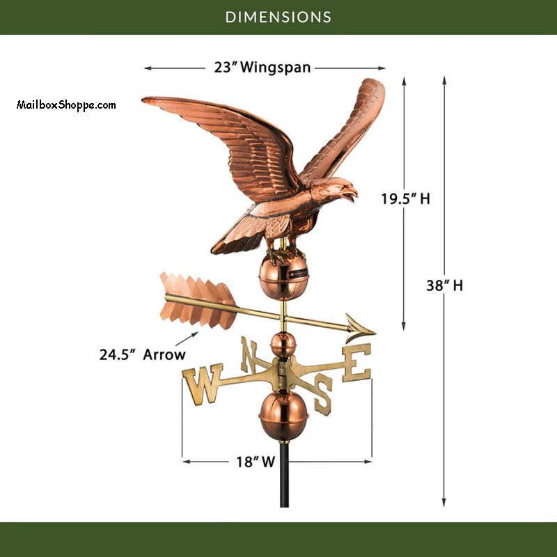 In 1782, the eagle became the official emblem for the new American union. Today, he’s spreading his broad wings to adorn the rooftop of your home, garage, cupola, barn or gazebo. Our pure copper weathervanes have been unsurpassed in style, quality, and durability – perfect for the house-proud homeowner.