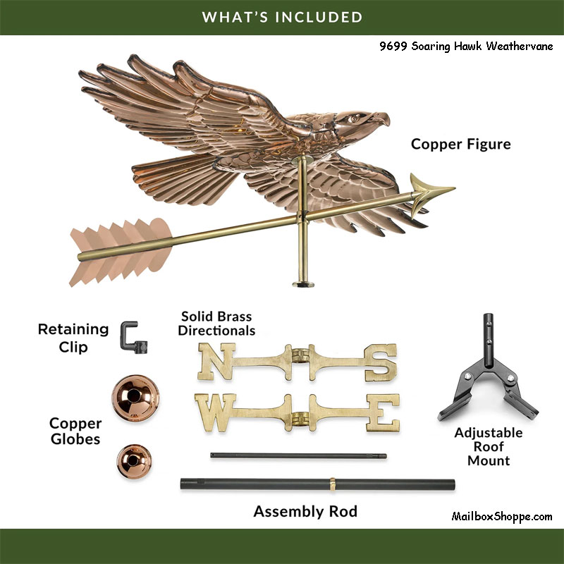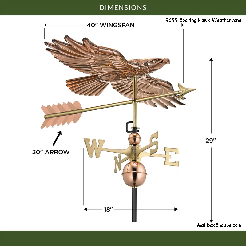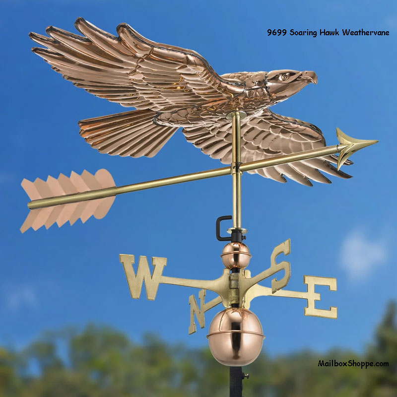 Our 9699 Soaring Hawk Copper Weathervane features: