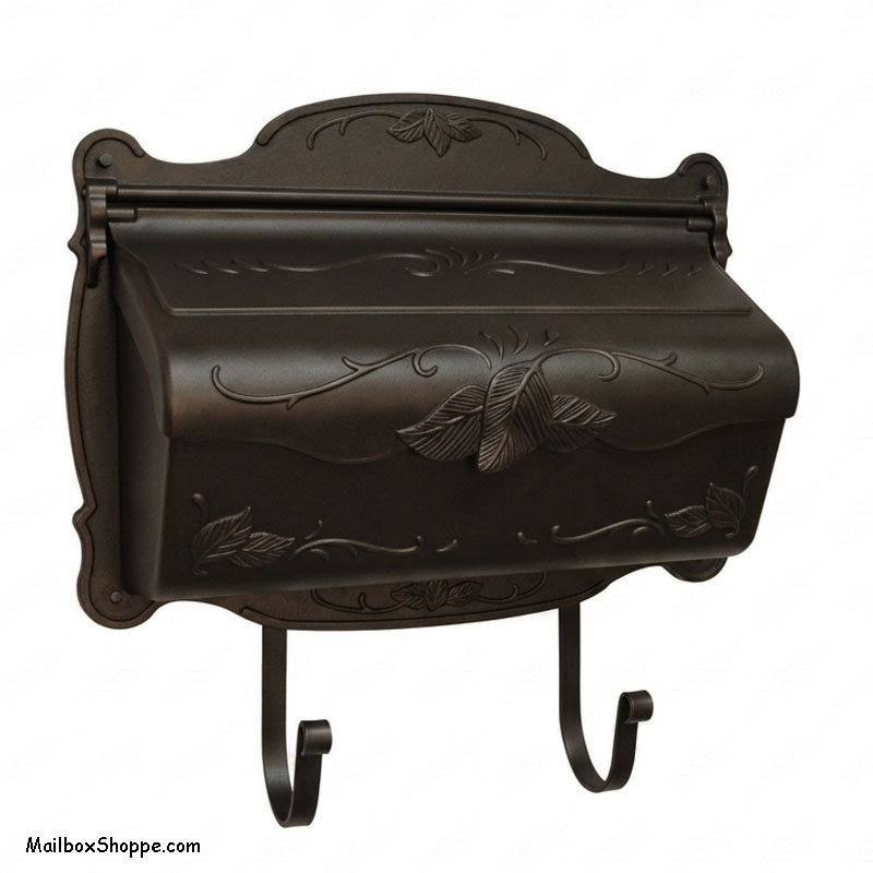 The Cast Floral Leaf Wall Mount mailboxes are made from rust free aluminum and painted with powder coat paints which produce a finish that will last for many years. Each unit includes matching magazine hooks.