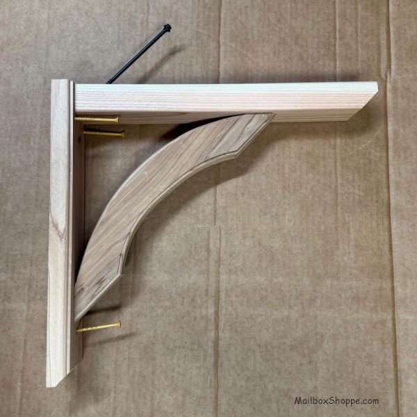 We sell this bracket as a replacement for broken mailbox post. The raw wood bracket has color variations from light to dark. The wood we select is based more on seeing fewer knots rather than consistent color (since we think most people probably paint them). They are hand-cut with a routed front edge.