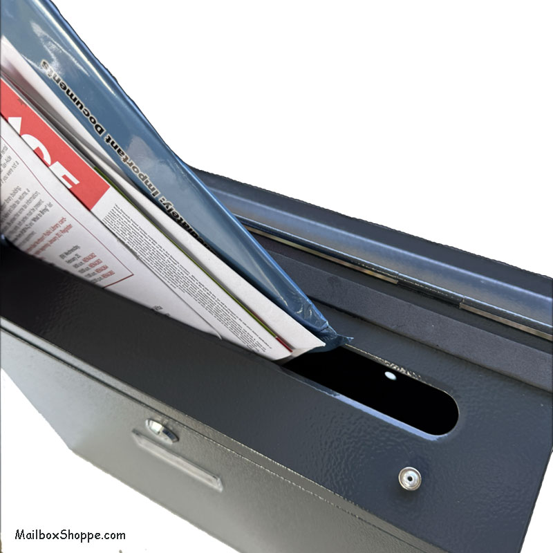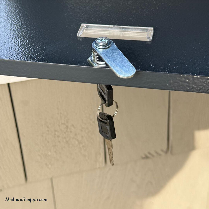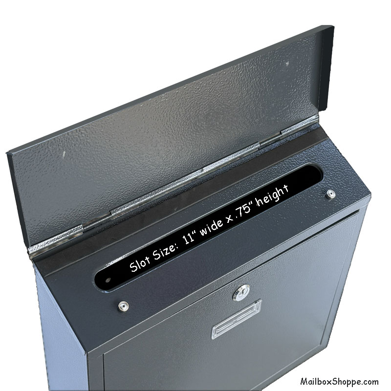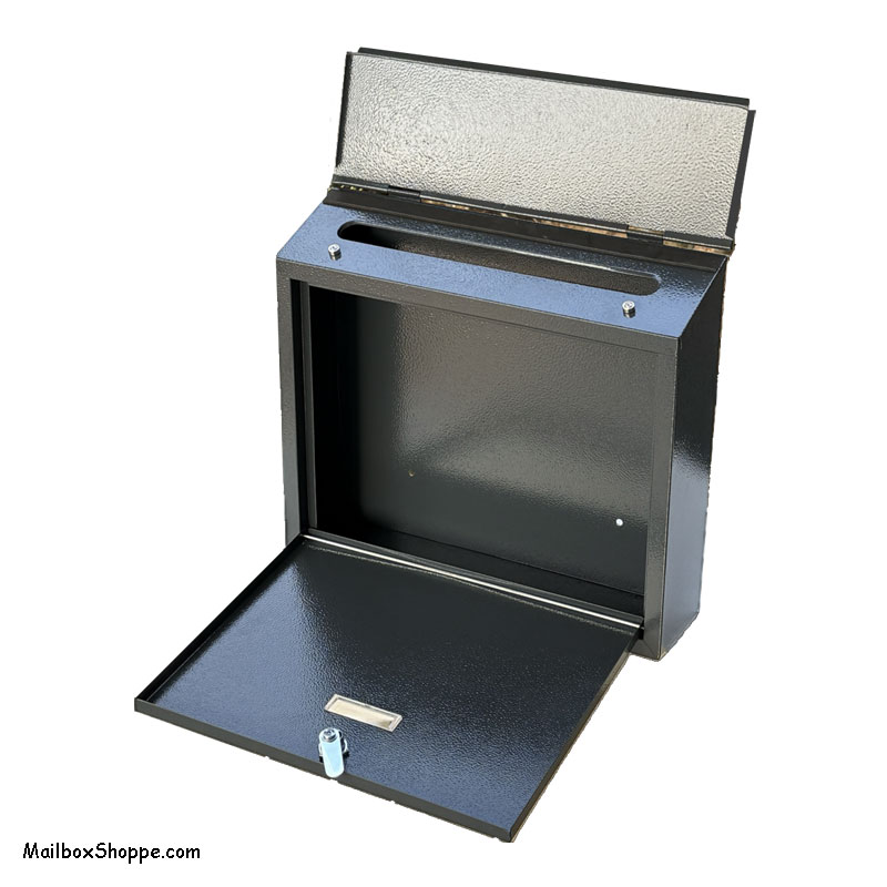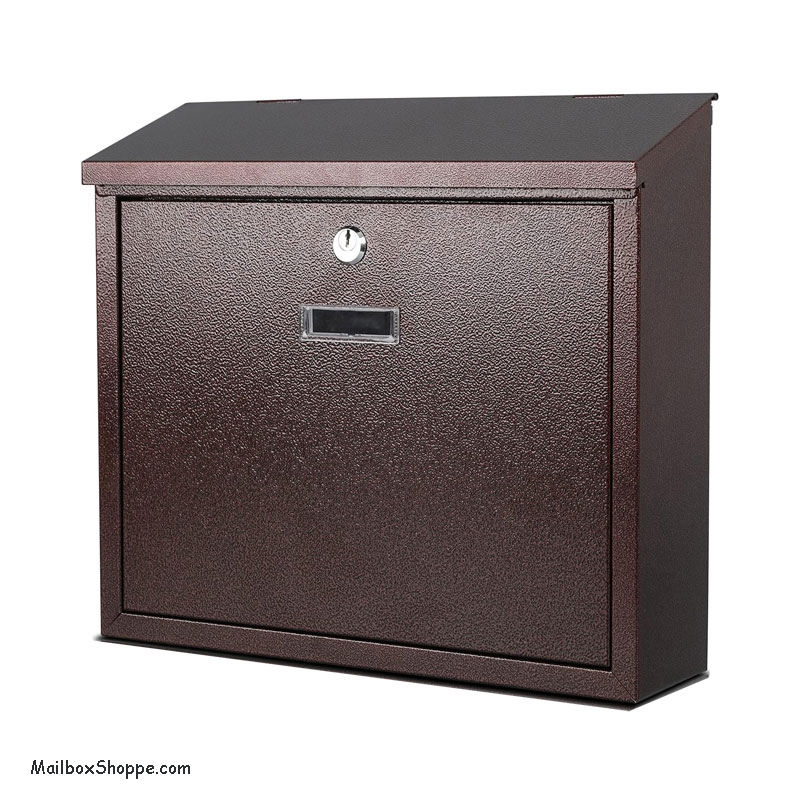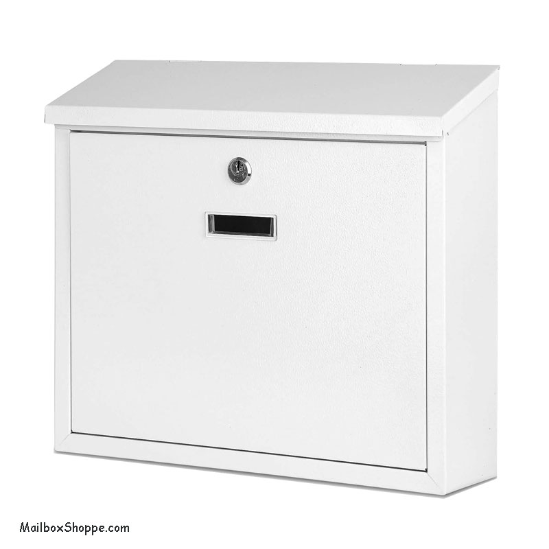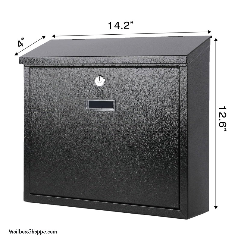 Neptune Locking Wall Mailbox made from galvanized steel and powder coated in black, bronze, grey, or white. Good mail security for use indoor, or outdoor Includes 2 keys.